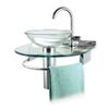 - Tampo de vidro lapidado incolor com espessura de 12 mm com cuba de apoio de vidro incolor.