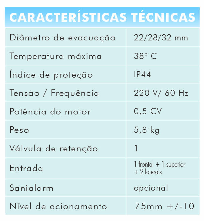 O triturador sanitário SANISLIM é um sistema que permite que a instalação de uma casa de banho completa com chuveiro, sanita, lavatório e bidé até 4 metros abaixo do nível do esgoto ou 40 metros horizontais. Funciona com uma sanita tradicional de descarga horizontal, a particularidade deste modelo é a menor profundidade do seu depósito. Com apenas 13 cm, pode optar por uma grande variedade de sanitas. Com o triturador SANISLIM, pode criar novos ambientes de banho elegantes em qualquer sitio dentro de casa.